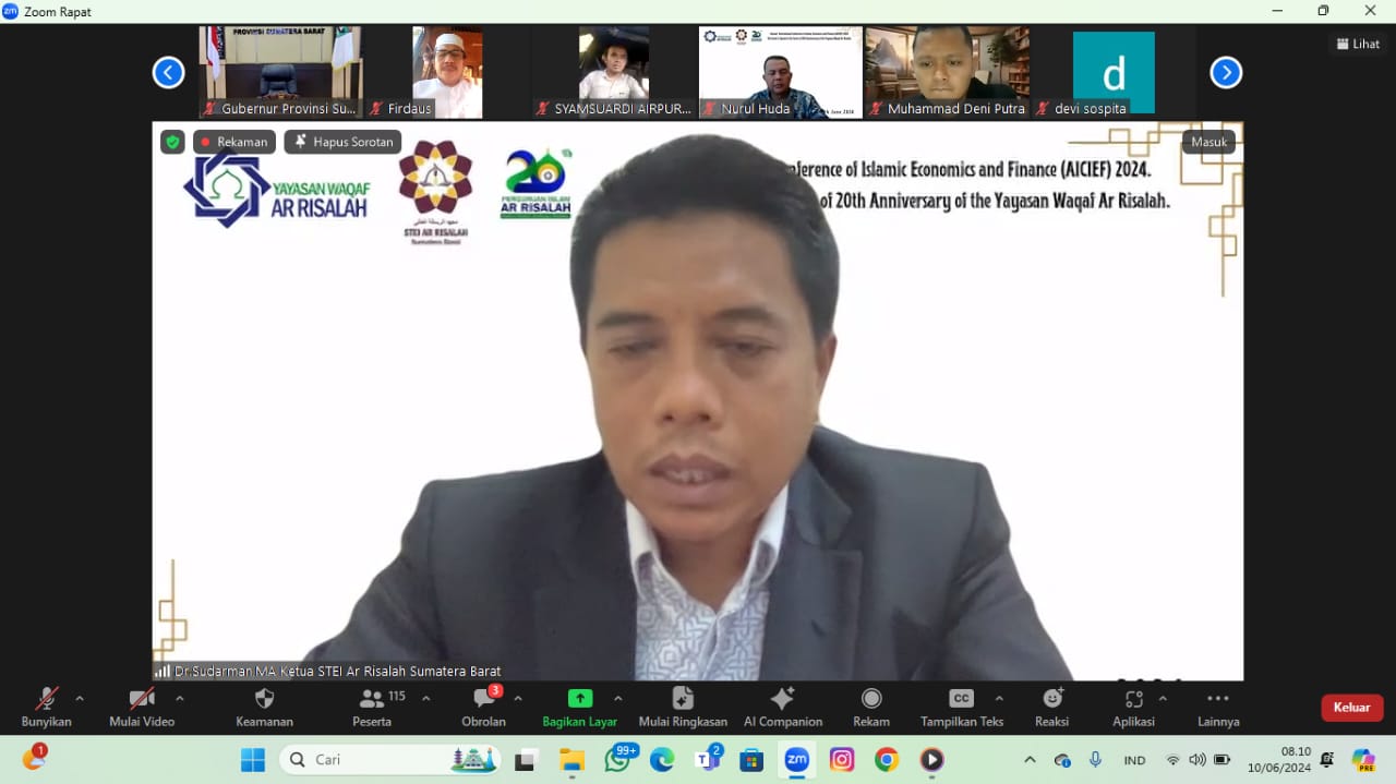 PADANG – STEI Ar Risalah Sumatera Barat (Sumbar) mengadakan konferensi internasional ekonomi Islam, atau Annual International Conference of Islamic Economics and Finance (AICIEF) 2024, Senin (10/6/2024).