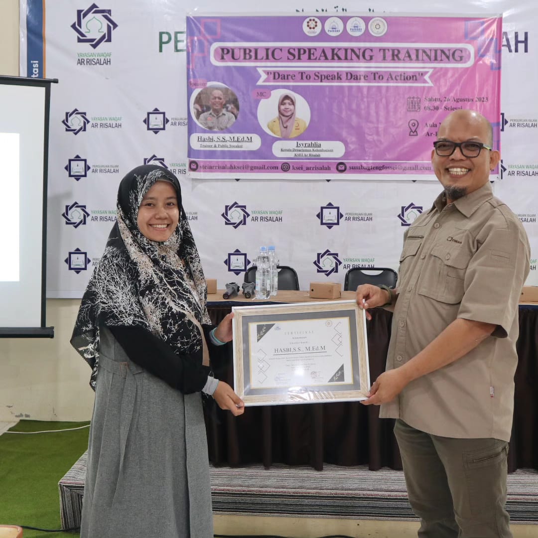 Diharapakan dengan adanya kegiatan Public speaking ini dapat meningkatkan seni berbicara di depan umum kata Pembina KSEI Ar Risalah, Mayang Bundo, S.E., M.E  yang juga selaku Kepala Pusat Penelitian dan Pengabdian Masyarakat. Disamping itu salah satu tujuan utama dari skill public speaking adalah memberikan informasi. Sementara tujuan utama dari pelatihan public speaking ini adalah untuk memberikan motivasi, menyampaikan informasi, mengendalikan situasi, mempengaruhi audiens.